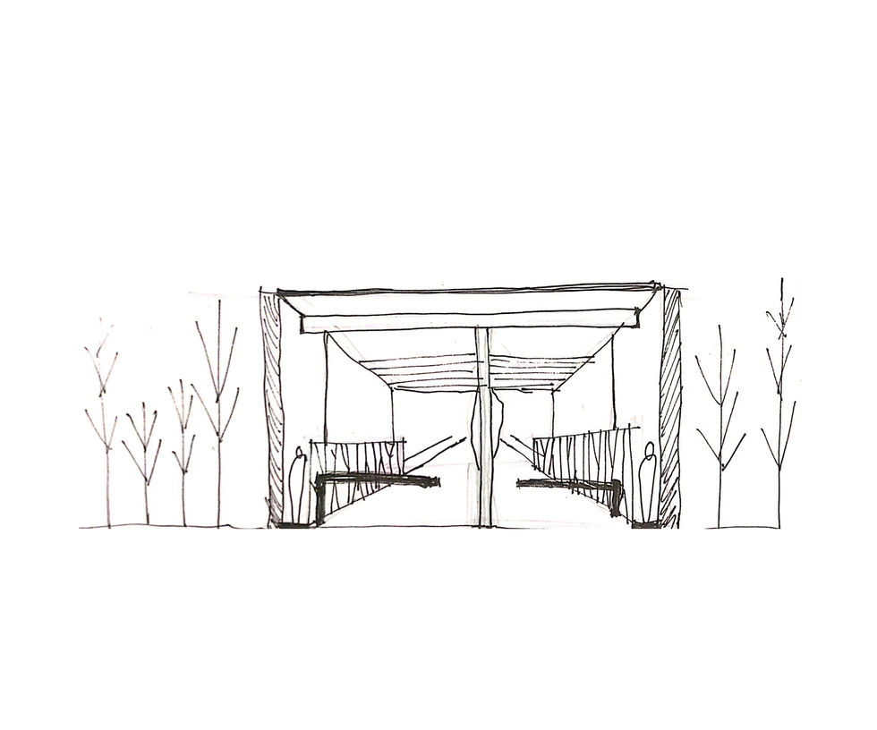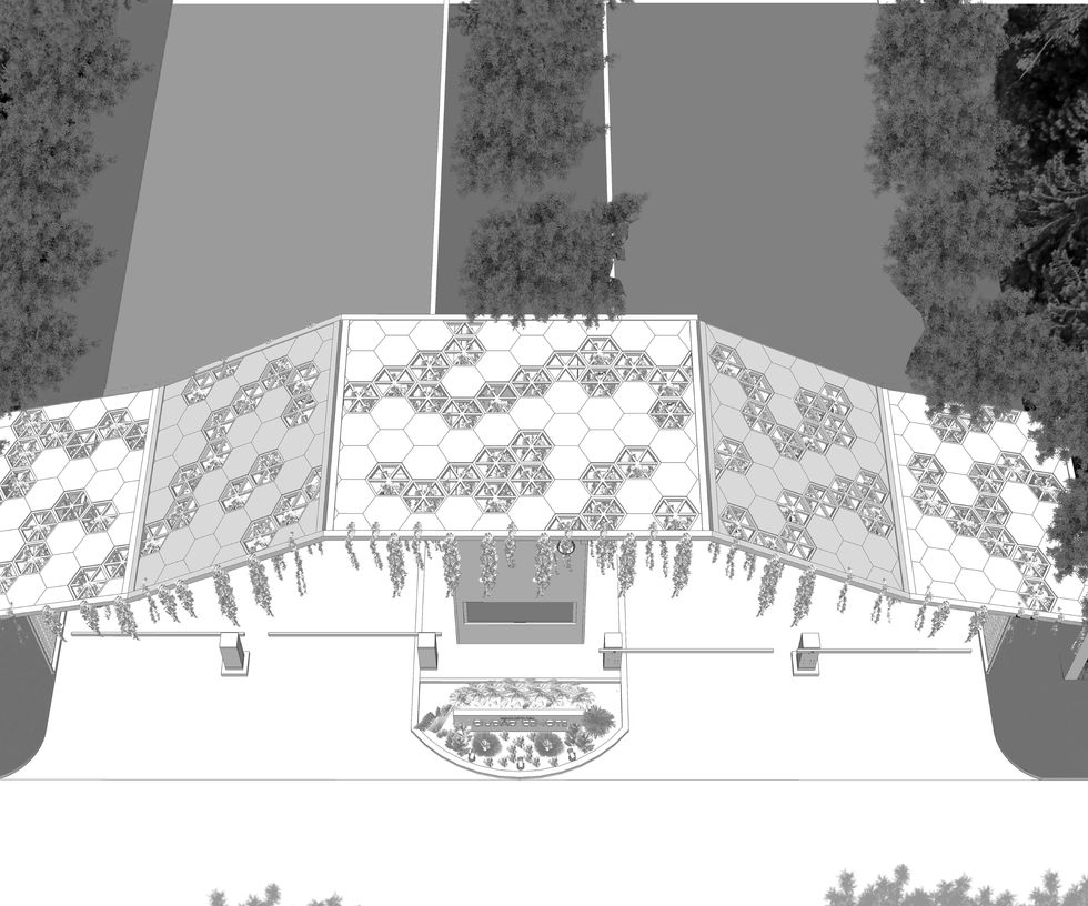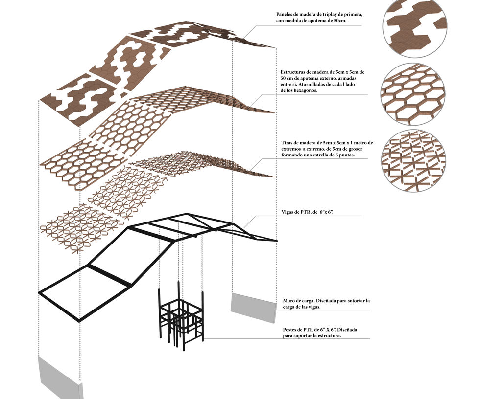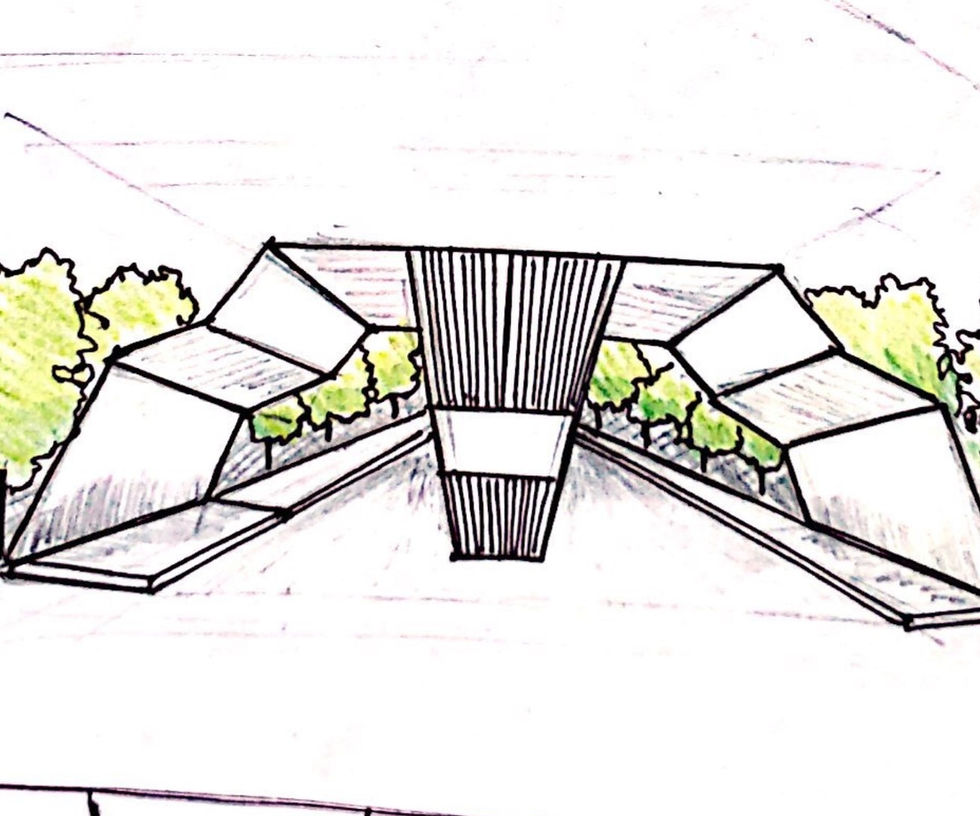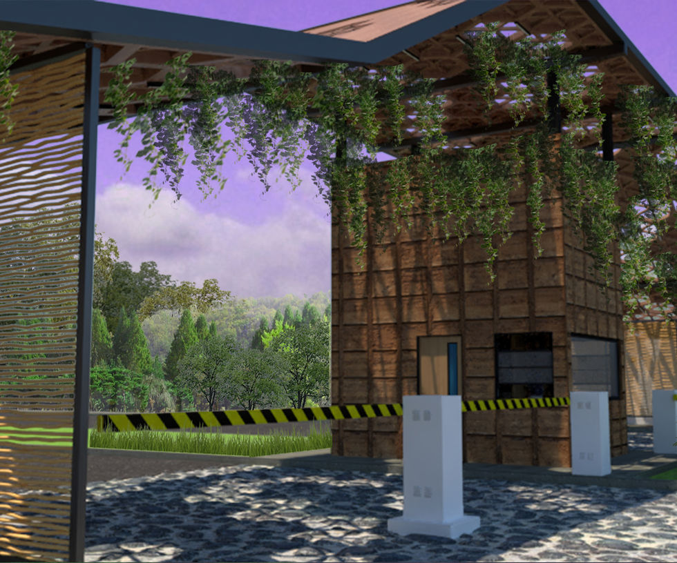 El Proyecto es resultado de un concurso realizado en el Estado de Quintana Roo, por el grupo The Artist 2020 el cual consistía en diseñar acceso para un fraccionamiento exclusivo. Se ubica en un lote a las afueras de la ciudad capital, rodeado de zonas arboladas. Se comenzó desde el bosquejo a partir de formas que asemejan el sitio tomando en cuenta el diseño de elementos y materiales de la zona. Asentando el proyecto con una visión más realista, en el sentido económico, social y arquitectónico, con base a la reglamentación para vehículos y respeto al peatón. La forma de trabajo fue en conjunto, realizando el proceso de dibujo, volumetría y renderizado para la entrega de dicho proyecto. El concepto parte de un techado con forma ascendente, haciendo referencia a las pirámides existentes en el estado. La cubierta tiene módulos en forma de hexágonos interconectados. La materialidad comprende de madera del sitio, estructuras de PTR para auto portarse, y al final cargar en los extremos en muros solidos de piedra repellada y pintada de color blanco. El acceso es controlado, con 4 carriles para entrada y salida de coches, y en los extremos se propone una banqueta amplia para acceso peatonal.
