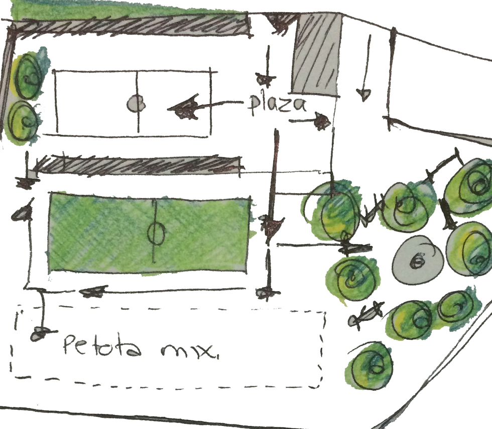 El Proyecto es resultado de un ejercicio realizado en la universidad, el cual consistía en conseguir un municipio para conocer sus necesidades en base al ámbito deportivo, para una unidad deportiva en específico. Se ubica en un pequeño valle, rodeado de zonas arboladas, en Santo Tomas Mazaltepec, en Oaxaca. La unidad deportiva está diseñada para la buena estancia de los habitantes de dicha comunidad durante su estancia en dicha área, ya que el centro deportivo contará con un acceso amplio, un parque de acceso, una bodega, una cafetería, baños, una cancha de usos múltiples, una cancha de futbol 7, una cancha de juego de pelota mixteca, y un área para juegos infantiles. El campo de juego es de césped artificial, orientado de norte a sur. Actualmente existe un canal de riego que pasa por la cancha deportiva, se pretende usarla para aprovechar el recorrido del mismo en un muro que dará como remate visual para los espectadores hacia el interior de la unidad deportiva. Los materiales que se estarán ocupando son propios de la región, implementando el juego de volúmenes por unidad a lo que se refiere en el tabique rojo recocido. Es un paisaje rural donde la Integración en la naturaleza es un objetivo en la arquitectura desarrollada debido a que la unidad deportiva se encuentra actualmente alejado del centro, pero tomando en cuenta el crecimiento poblacional a futuro. El verde, las ondulaciones de los campos y los montes del entorno dirigen la geometría de la solución propuesta.